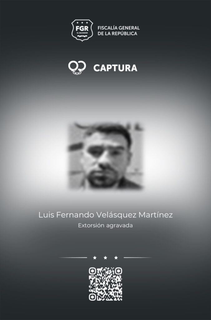Entre los detenidos está Luis Fernando Velásquez Martínez, miembro activo de la MS-13, y se le acusa del delito de extorsión agravada. El imputado interceptó a su víctima, le dijo que tenía que colaborar con la pandilla y le exigió una fuerte cantidad de dinero porque era para apoyar a los homeboys presos.