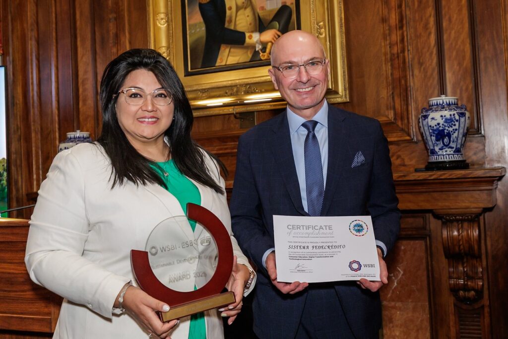 El SISTEMA FEDECRÉDITO fue galardonado con el prestigioso Premio Internacional ODS WSBI-ESBG 2025 (Sustainable Development Goals Awards 2025) el pasado 15 de octubre en Washington, DC, en dos categorías que posicionan a la institución salvadoreña como referente en Educación del Cliente y en Transformación Digital e Innovación Tecnológica, entre las principales cajas de ahorro y bancos minoristas del mundo.