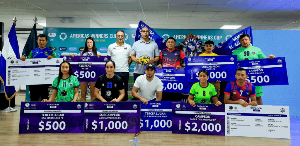 El anuncio también permitió reconocer a los equipos salvadoreños que representarán al país en próximas competencias internacionales. Las plantillas de Barra de Santiago, en femenino, y Garita Palmera, en masculino, recibieron sus acreditaciones para participar en la World Winners Cup 2026, tras haberse coronado campeones de la Liga de Fútbol Playa en su última temporada.