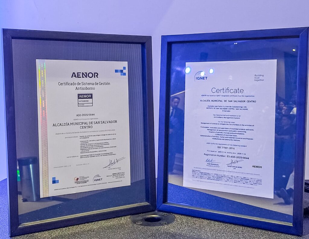 La Alcaldía de San Salvador Centro, bajo el liderazgo de Mario Durán, ha alcanzado un logro histórico al obtener la Certificación ISO 37001 del Sistema de Gestión Antisoborno. Este reconocimiento internacional avala que la municipalidad es la primera en El Salvador en contar con sólidos y efectivos mecanismos para prevenir, detectar y gestionar las prácticas de soborno dentro de su administración.