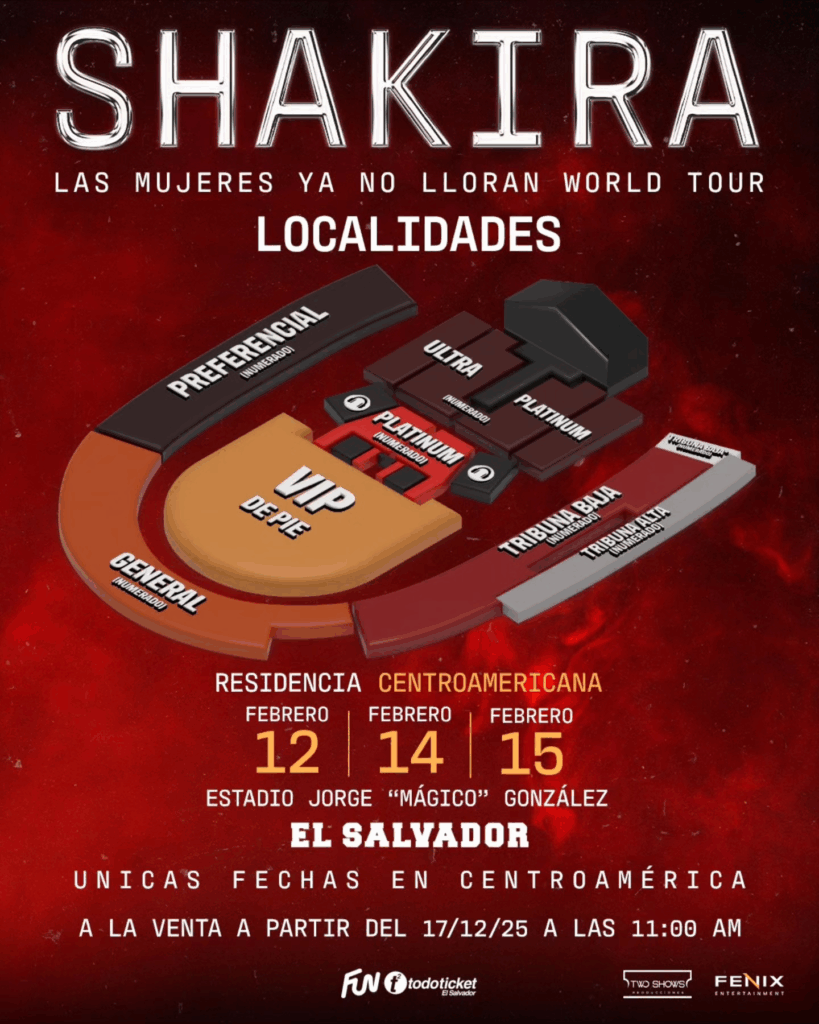 Con este anuncio, Shakira reafirma su conexión con los fanáticos centroamericanos y asegura que esta residencia será una de las experiencias musicales más memorables de la región.