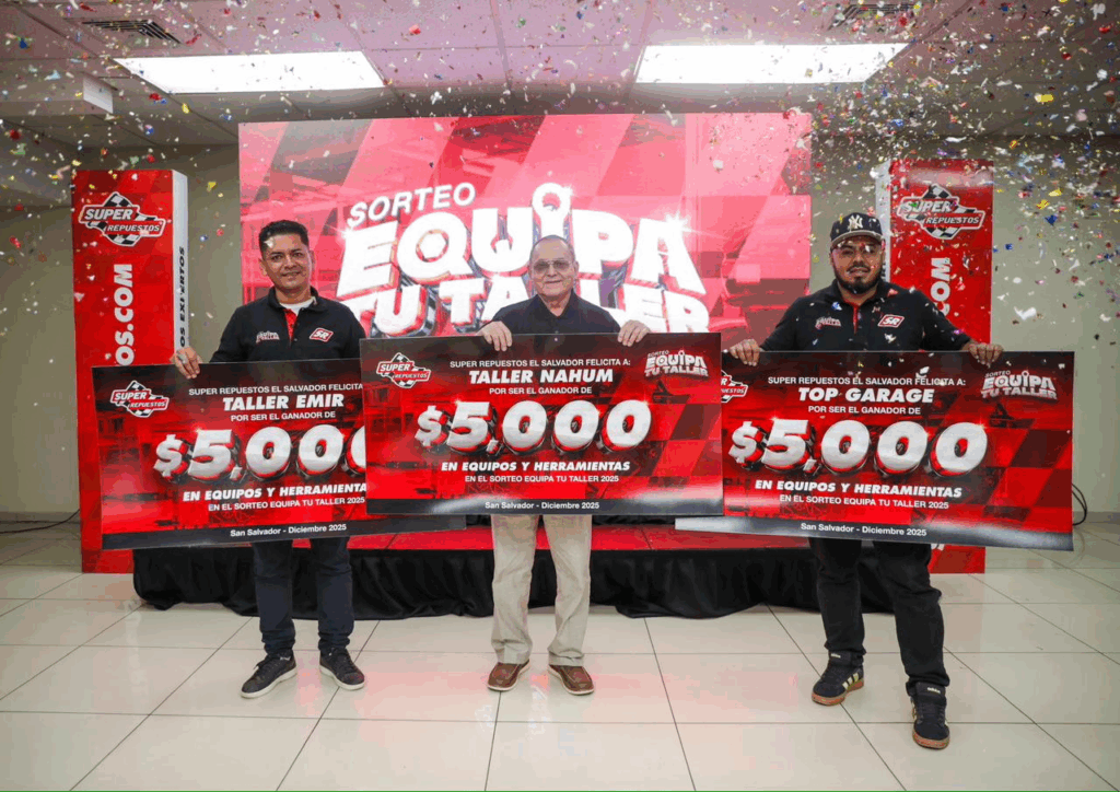 Super Repuestos celebró el cierre del sorteo “Equipa tu Taller 2025”, una iniciativa diseñada para seguir impulsando la superación y el fortalecimiento de los talleres automotrices salvadoreños. Tras varias semanas de participación exclusiva para técnicos automotrices, la empresa dio a conocer a los tres ganadores de esta edición, quienes recibieron US$5,000 en equipos y herramientas especializadas para modernizar sus talleres y potenciar la calidad de sus servicios.