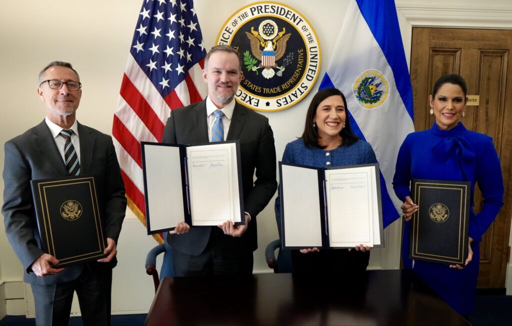 El Salvador consolidó su relación comercial con Estados Unidos tras la firma de un Acuerdo Comercial Recíproco que elimina el arancel del 10% a las exportaciones salvadoreñas hacia ese mercado. El pacto fue suscrito por la Representante de Comercio de Estados Unidos, Jamieson Greer, y la Ministra de Economía de El Salvador, María Luisa Hayem, marcando un hito al convertirse en el primer acuerdo de este tipo en el Hemisferio Occidental.