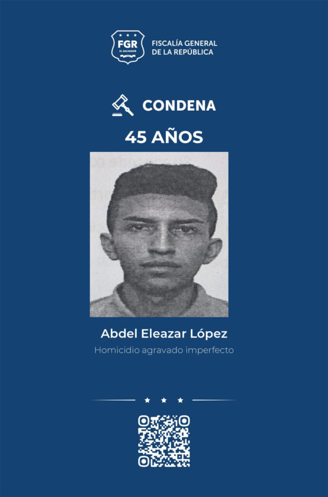 Tras las pruebas presentadas en juicio, la Fiscalía logró que se condenara a Enmanuel Adonay Ortiz Orellana, alias “ratón”; Marvin Alexander Colato Colato, alias “colato”; Kevin Alexander Cruz González, alias “koala”; Moisés Eliezer Rivas Rodríguez, alias “chele”; Alexis Eduardo Lara Quinteros, alias “neney”; Mauricio Antonio Blanco López, alias “chele”; Alexis Armando Benavides Marroquín, alias “coneja”; Bryan Esteven Flores Villafuerte, alias “pin pong, goty o payaso”; Bryan Alberto Molina Ascencio, alias “black”; Byron Osvaldo Andrade Meléndez, alias “campero”; Edwin Josué Vargas Zelaya, alias “virolo”; Carlos Vladimir Vanegas Martínez, alias “vanegas o gatillero”; Abdel Eleazar López, “Abdel”