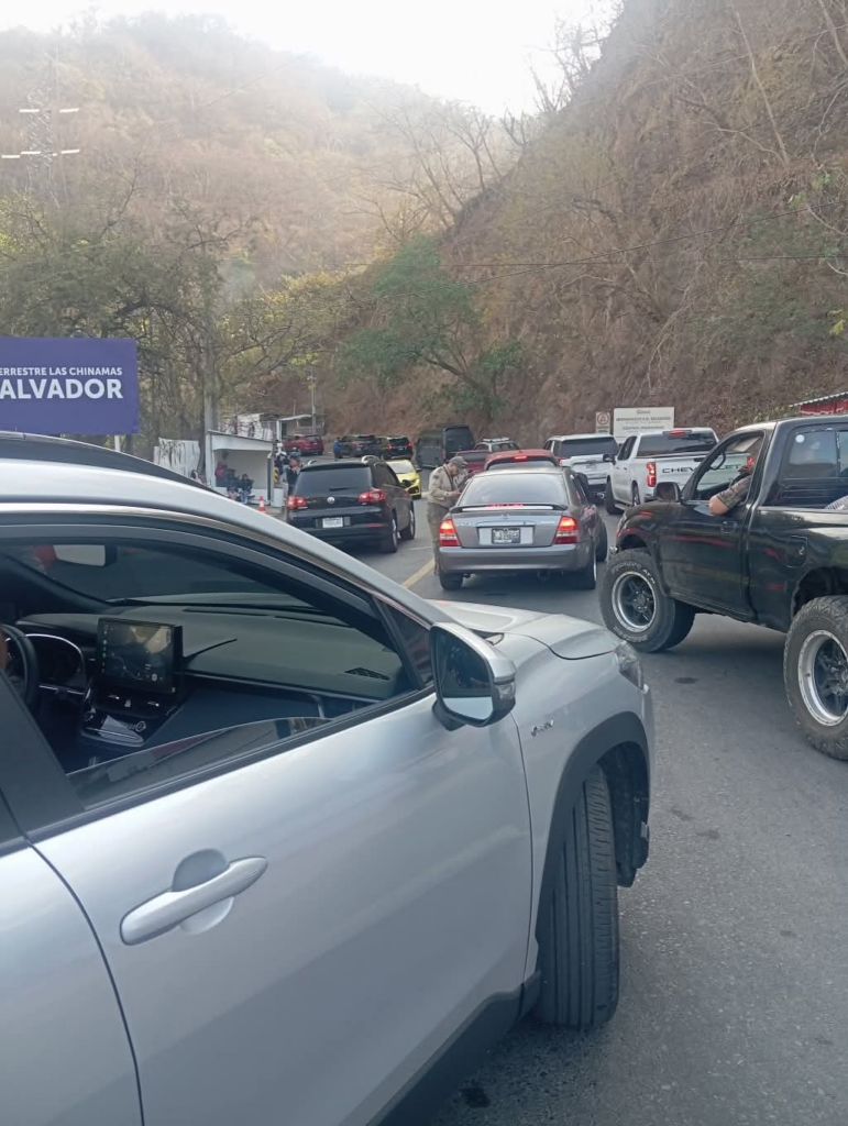 Un notable movimiento de viajeros se registra en la frontera Las Chinamas, donde largas filas de vehículos se han formado para ingresar a El Salvador durante el periodo vacacional de Semana Santa.