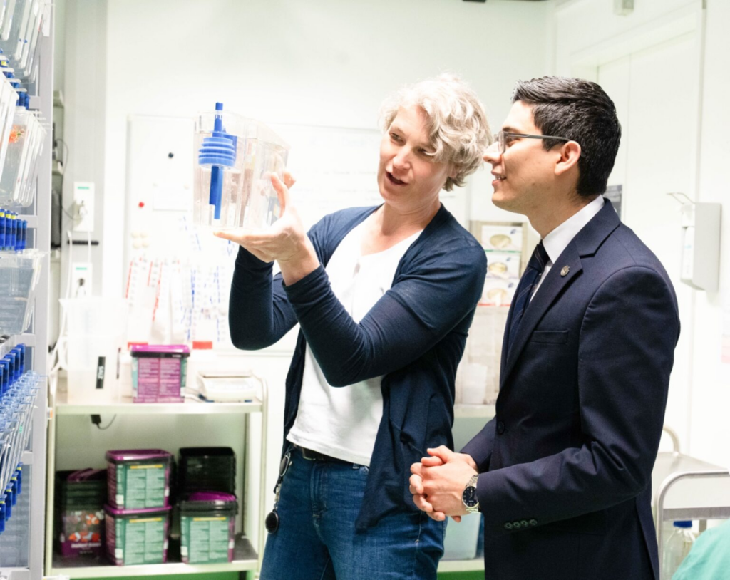 Durante la actividad, se realizó un recorrido por laboratorios especializados y por la “Fish Facility”, donde se presentaron modelos experimentales empleados en investigación biomédica, así como plataformas tecnológicas de vanguardia. Estas capacidades consolidan al Vienna BioCenter como un referente global y un hub estratégico en el ámbito de las ciencias de la vida.