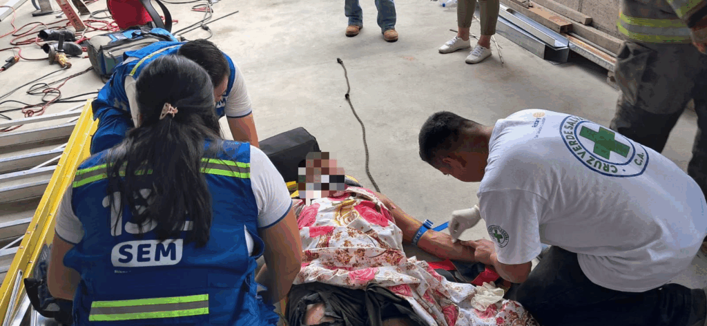 De acuerdo con testigos en la escena, el paciente habría sido alcanzado por el campo electromagnético de un cable primario de alta tensión, lo que le provocó quemaduras de tercer grado en una parte considerable de su cuerpo.